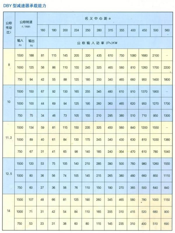 DBY型減速器公稱傳動比與實際傳動比